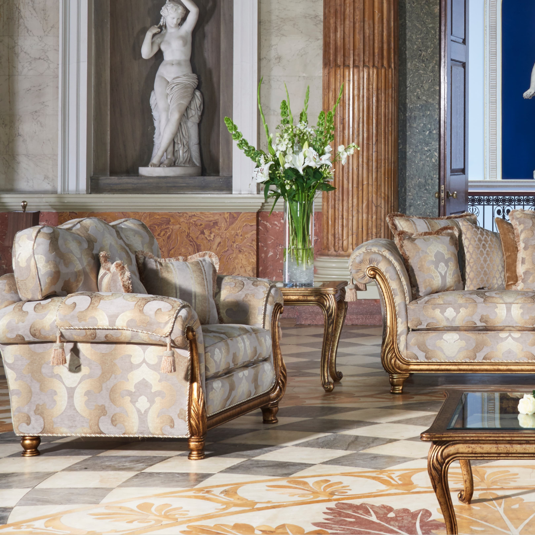 Exuding opulence from every angle with its classic, Art Noveau style, the Victoria Fabric Sofa, Chair & Footstool Collection is the very definition of extravagance and truly captures the excessive indulgence of the baroque and liberty eras, with its decadent, period features. Artisan design at its finest, each piece in the Victoria range has been hand-crafted to perfection from the finest materials by skilled craftsman and is completely customisable to you. The classic scroll arms, corded trim, tassels and ornate, decorative leaf motif on the hand-carved, elaborate frame and facia panels all heighten the luxurious essence of this range and reflect the true artistry and craftsmanship that is behind each piece.