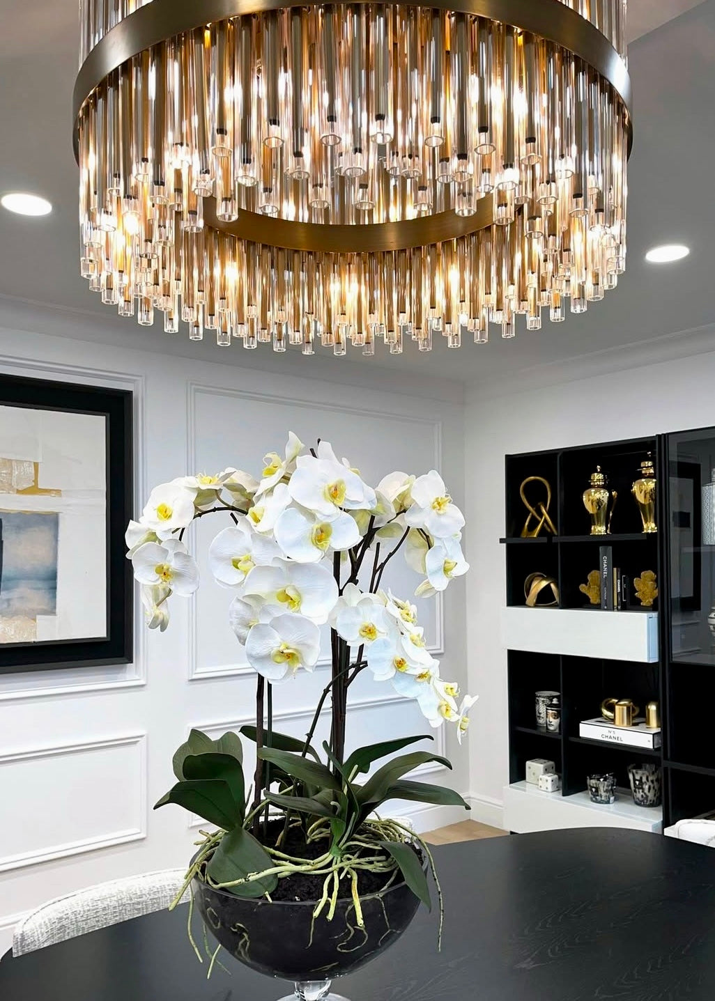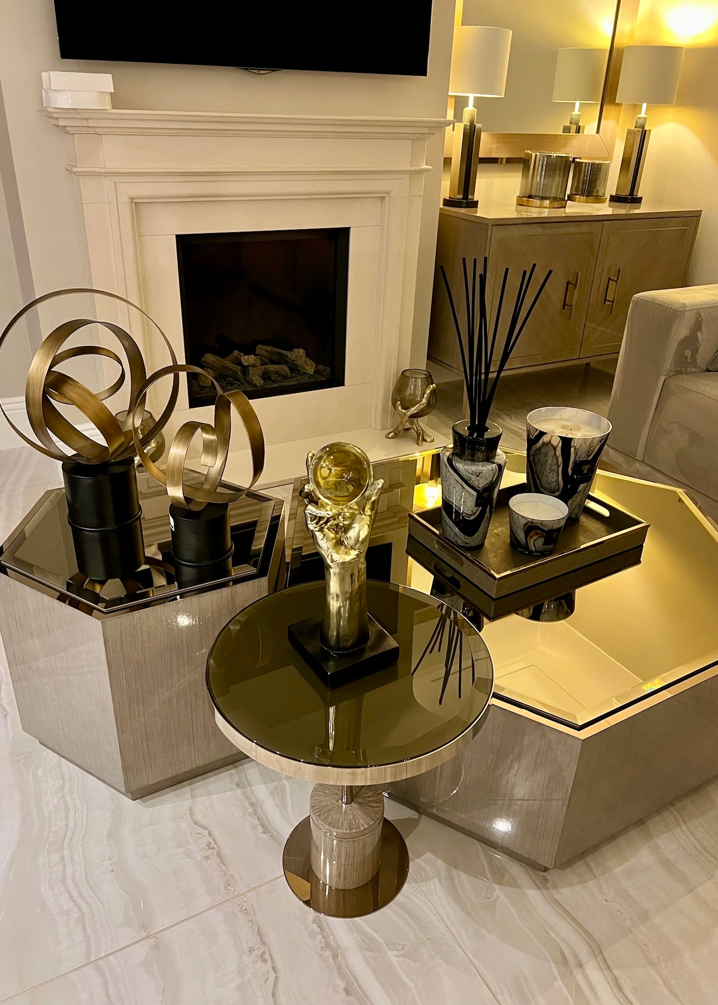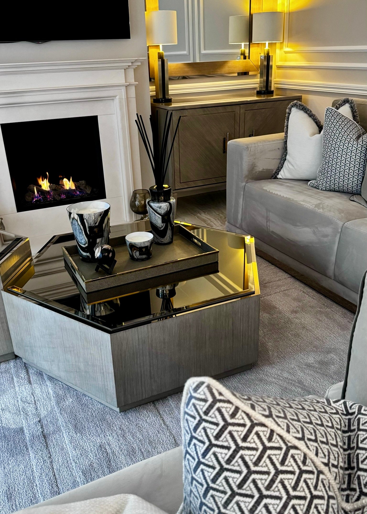 Our team created a sleek, contemporary look throughout the property, featuring bespoke furniture, custom wallpapers, and a sophisticated colour scheme. The living spaces include luxurious bespoke sofas, elegant dining tables and chairs, and exclusive accessories that bring the whole design together.